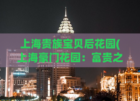 夜生活 上海贵族宝贝后花园(上海豪门花园:富贵之家的体面庭院) 上海贵族宝贝后花园-上海豪门花园:富贵之家的体面庭院上海豪门花园,是富贵之家的体面庭院,是华贵生活的象征。在这里,你可以享受到都市繁华中... admin168 2023-11-23 评论(0)条 阅读368次