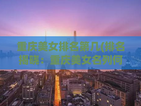 吃喝玩乐 重庆美女排名第几(排名揭晓:重庆美女名列何位?) 重庆美女排名第几?重庆市是中国西南地区的一座重要城市,拥有着众多美女。如果你真的想知道这座城市的美女排名,那么我们就来一探究竟。第一名:... admin168 2023-09-03 评论(0)条 阅读439次